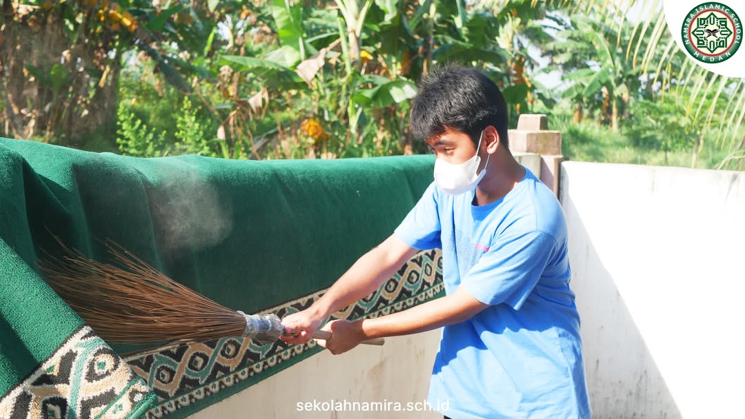 Gotong royong membersihkan Masjid Desa dan persiapan acara Festival Anak Soleh.