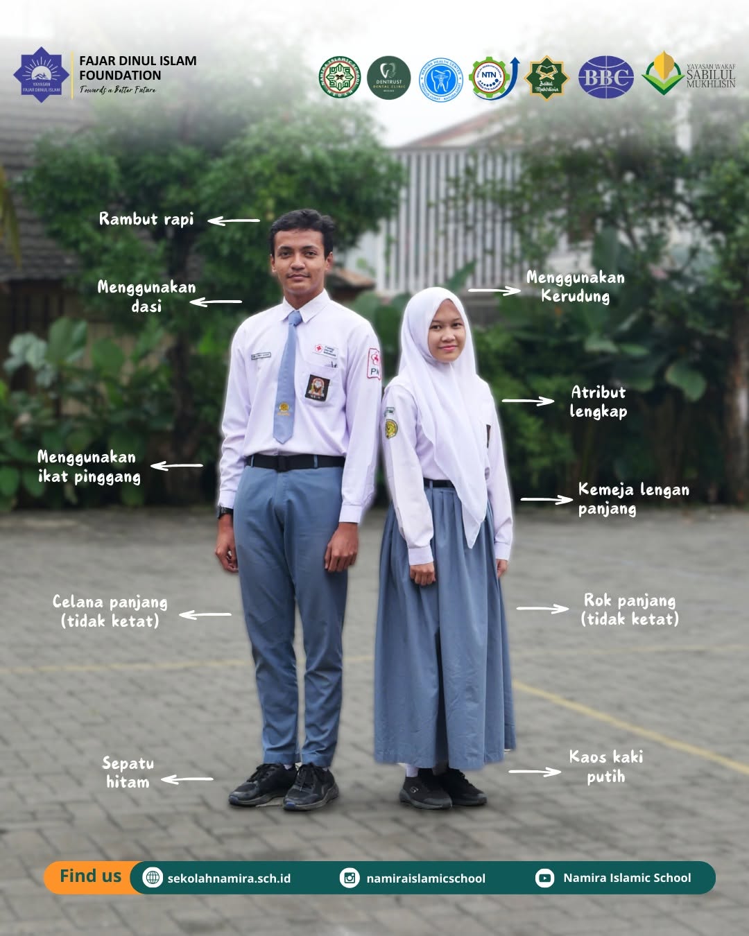 Seragam rapi bukan sekadar aturan, tetapi cerminan izzah (kehormatan) dan adab sebagai seorang Muslim. Mari tampil sopan, berwibawa, dan penuh keberkahan dalam menuntut ilmu! 📚🎓