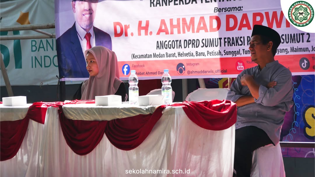 Hari ini, Anggota DPRD Sumatera Utara Bapak Dr. H. Ahmad Darwis, S.Ag., M.A hadir langsung di SMA Islam Namira dalam rangka sosialisasi Peraturan Daerah (PERDA) sekaligus pelaksanaan pelatihan antisipasi penyalahgunaan narkoba bersama BMPS.