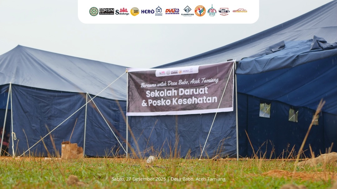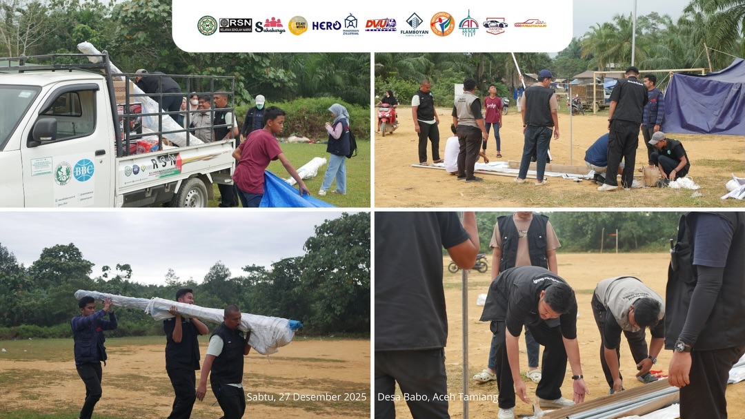 Alhamdulillah, 2 tenda darurat untuk Desa Babo, Aceh Tamiang telah selesai dipasang.